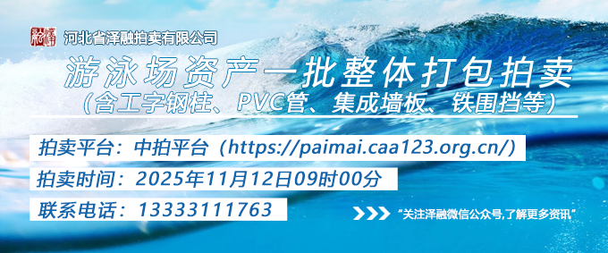 • [拍賣公告]游泳場資產一批(含工字鋼柱、PVC管、集成墻板、鐵圍擋等)整體打包拍賣20251112 2025-11-04